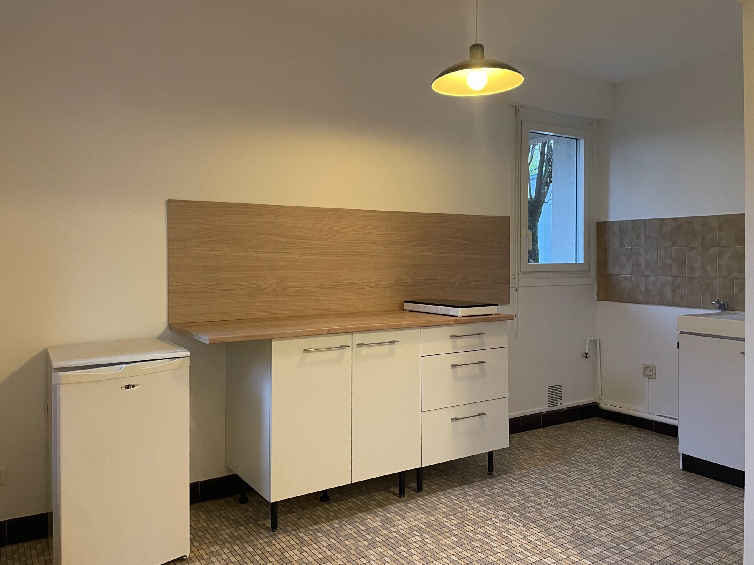 Par souci de budget, les carrelages muraux de la cuisine et de la salle d’eau ont été conservés.
